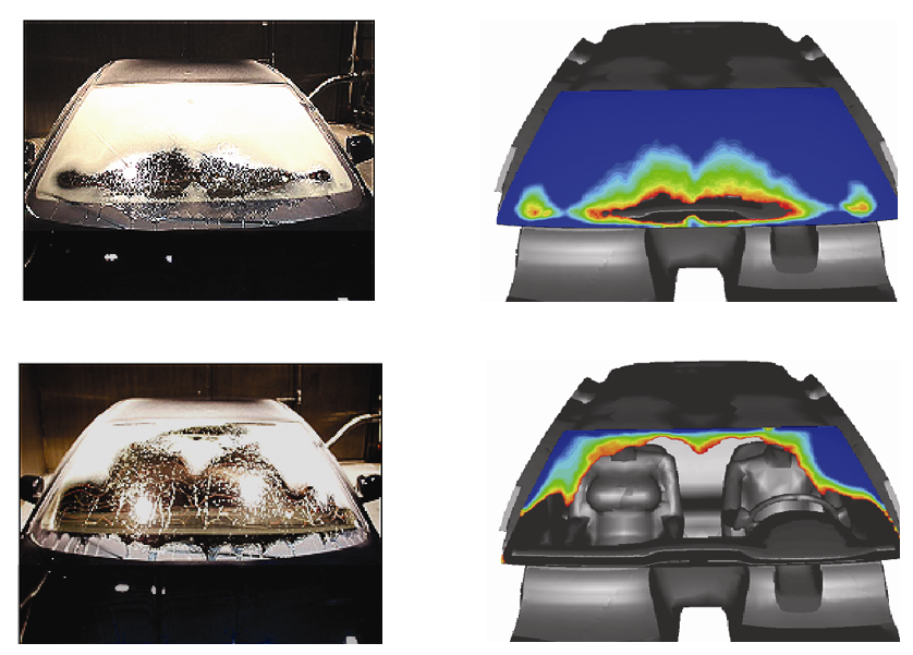· 玻璃加熱模,除霜分析仿真 針對新上市的某車型,利用Ansys CFD軟件成功模擬了該車前擋風玻璃的穩態速度流場以及除霜瞬態過程中的物理現象。