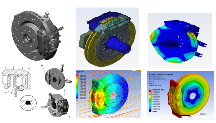 · 制動系統分析 本文以某車型盤式制動器為分析對象,通過使用 Ansys workbench平臺中建立了其限元模型,綜合考慮了盤式制動器的模態振型,顯式制動發熱,熱變形的耦合分析。