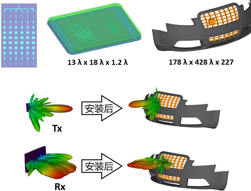 · 汽車?yán)走_(dá)天線布局 以汽車毫米波雷達(dá)為研究對象,使用軟件ANSYS HFSS,分析了汽車?yán)走_(dá)布局前后輻射方向圖及性能參數(shù)。