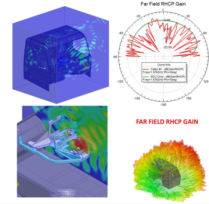 · 車載多射頻系統(tǒng)RFI分析 以車載多射頻系統(tǒng)為研究對象,使用軟件ANSYS HFSS,分析了多個射頻通信系統(tǒng)共址且同時運行的復(fù)雜情景,并且包含定位干擾問題所需的所有全系統(tǒng)級的相互作用,用于干擾優(yōu)化方案的評估。