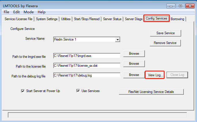 6 選擇“Config Services”,然后單"View Log"按鈕,可以看到日志文件中反映的INCLUDE_BORROW選項行。