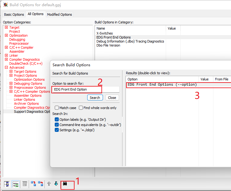 2、切換到All Options欄,找到Support Diagnostics Option選項(xiàng),然后找到EDG Front End Option配置項(xiàng)(如圖2)或者通過搜索功能,搜索找到EDG Front End Option配置項(xiàng)(如圖3)。