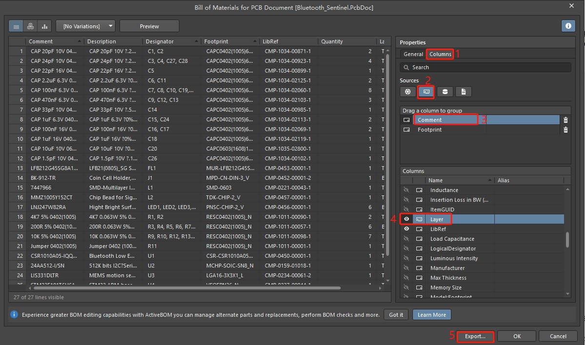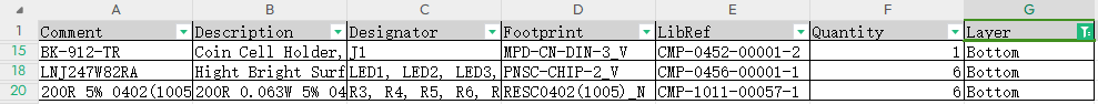 解決如何在PCB中雙面都有物料,導出BOM清單帶有層信息。