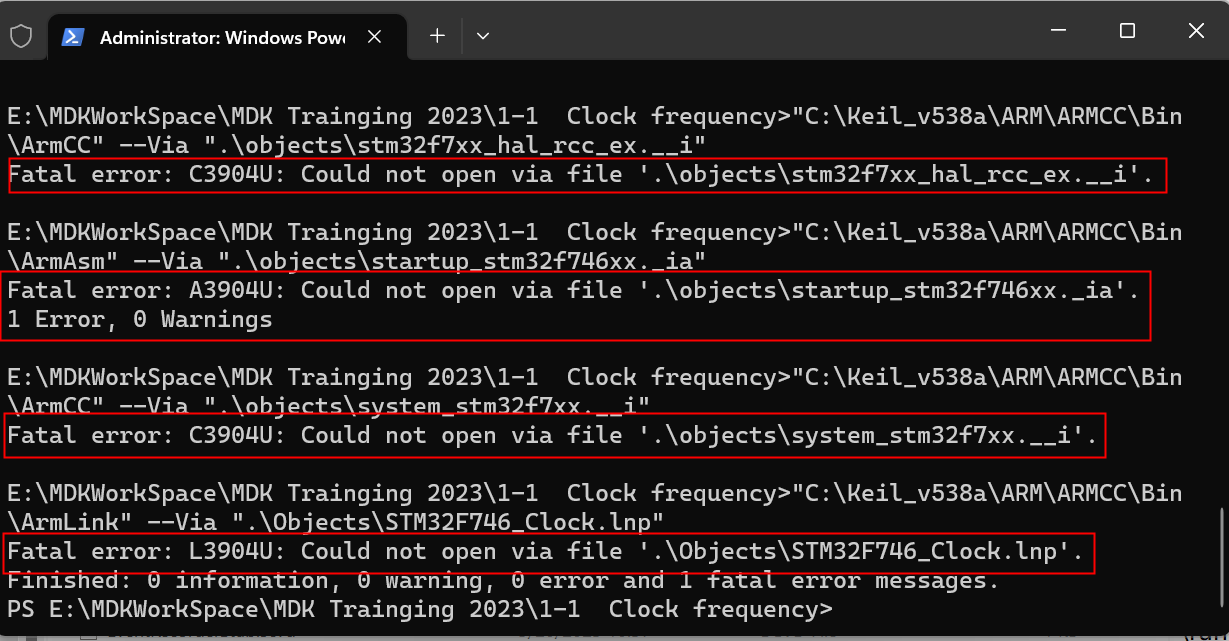 如果沒有保存好工程的編譯與鏈接的相關參數文件,在編譯時會出現如圖2-1所示的錯誤: