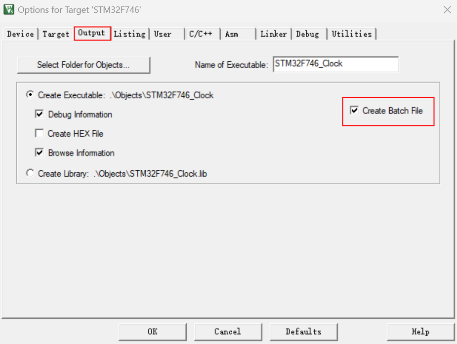 2)、如果上述的文件不存在,再打開Build Option,選“Create Batch File”,再重新編譯工程,生成一下編譯與鏈接文件,如圖4-2所示: