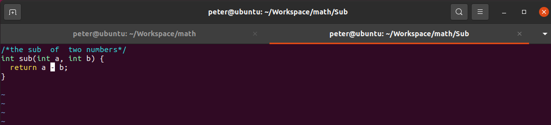 1)、在math目錄下,創建一個子目錄:Sub,并創建一個sub.c文件,文件的內容如下: