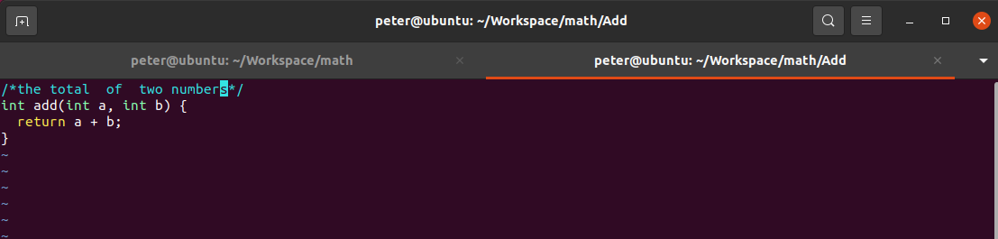 2)、在math目錄下,創建一個子目錄:Add,并創建一個dd.c文件,文件的內容如下: