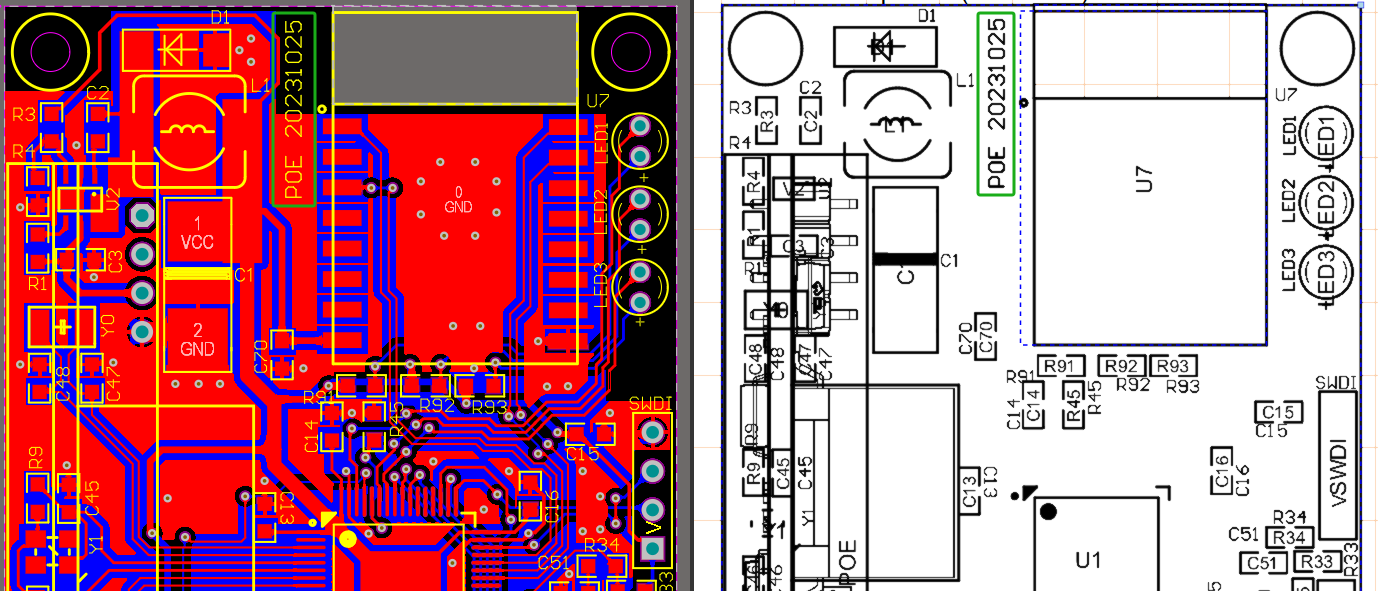 3、這時(shí)在圖 4 中就可以看到和 PCB 一致的絲印顯示,即可以顯示線路板編號(hào)等 Text 信息。