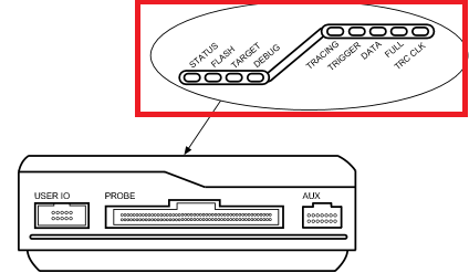 DStream指示燈上面一共有9個指示燈(如圖1)。分別為調(diào)試特性的指示燈和Trace特性的指示燈。