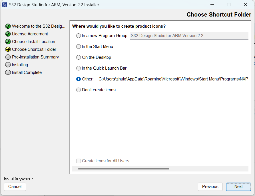 選擇產品圖標的存放路徑,再點擊”Next“