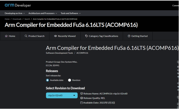 1)、首先,需要在ARM官網中下載Arm Compiler for Embedded FuSa 6.16LTS的安裝包。(如圖4-1)