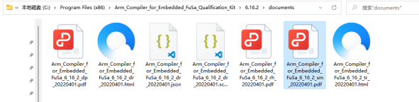 4)、默認安裝完成后,在C:Program Files (x86)Arm_Compiler_for_Embedded_FuSa_Qualification_Kit6.16.2documents目錄中存放著開發(fā)報告、安全手冊等安全認證報告。(如圖4-4)