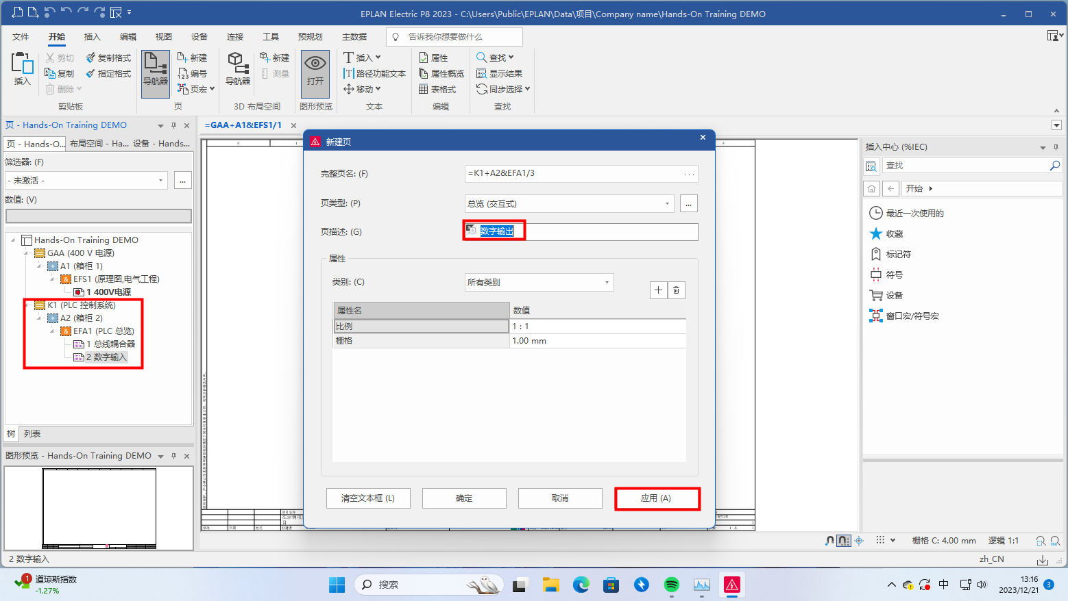 選擇頁類型:安裝板布局;添加頁描述,這里需要修改圖紙比例進行放大,點擊【確定】