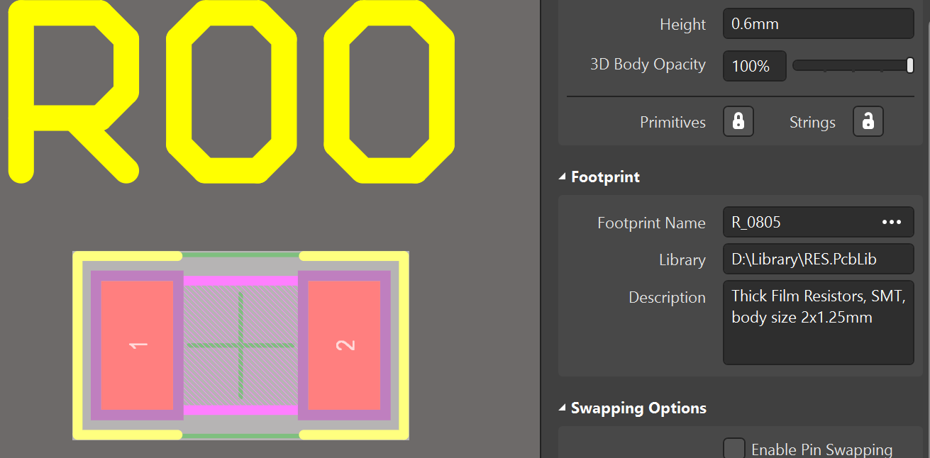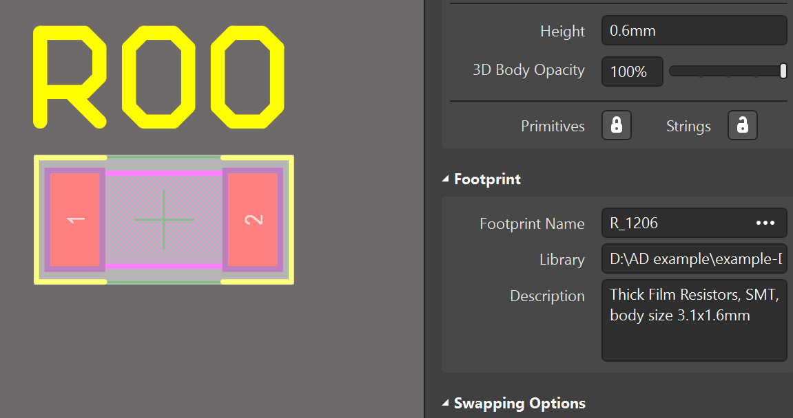 設(shè)計(jì)中對(duì)某一個(gè)元器件的封裝進(jìn)行更換(原理圖符號(hào)關(guān)聯(lián)的封裝由封裝A更改為封裝B)之后執(zhí)行update PCB,原封裝無(wú)法被新封裝替換。見(jiàn)圖1,R00的封裝由0805更改為1206,原理圖中查看該元件,封裝已被替換,但是update PCB后,R00的封裝依然是0805,見(jiàn)圖2。