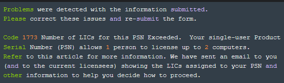 超授權情況:許可協(xié)議允許單用戶產品序列號 (PSN) 最多可在兩臺計算機上獲得許可,并且僅供一個用戶使用。
