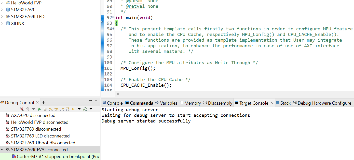 3)、然后, ARMDS中就可以看到連接成功了(如圖4-3-1)。并且可以成功調(diào)試(如圖4-3-2)