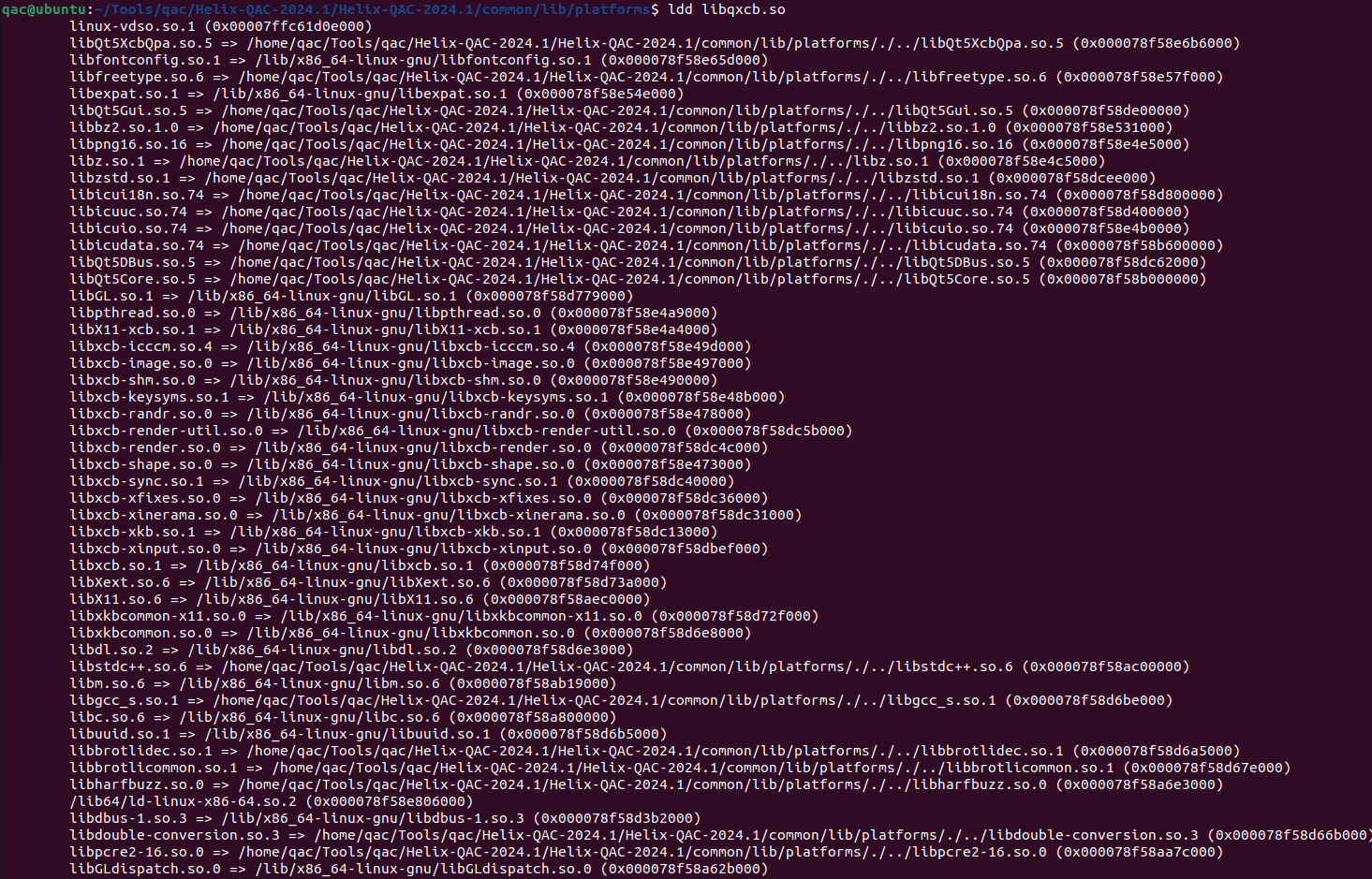輸入命令< ldd libqxcb.so>,得到相關環境信息。
