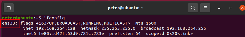 (5)、然后,通過“sudo reboot”對于Ubuntu進行重啟。使得配置項生效。重啟后,可以查看到網卡信息如圖4-2-5所示,變成了eth0。