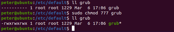 (2)、因為要修改grub文件,所以需要先將文件的屬性修改成可讀寫。(如圖4-2-2)