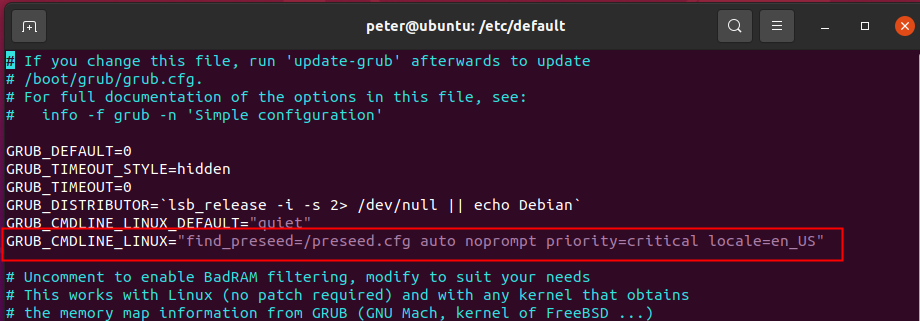 (4)、修改保存好后,通過執行“sudo grub-mkconfig -o /boot/grub/grub.cfg”命令,將修改后的內容添加到配置文件中。(如圖4-2-4)
