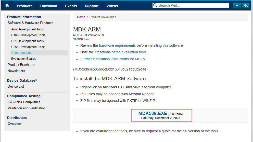 MDK-ARM Version 5.39 Evaluation Software Request (keil.com)