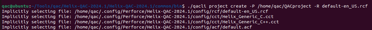 ./qacli project create -P /home/qac/QACproject -R default-en_US.rcf