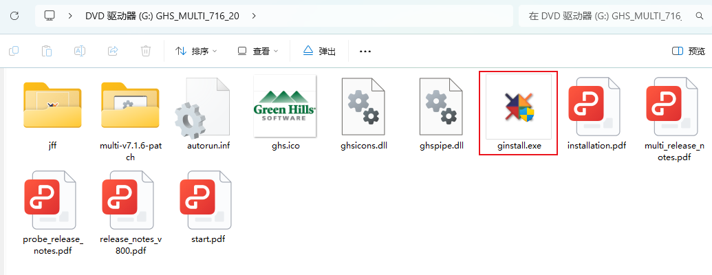 MULTI 7.1.6(d)版本的安裝包中需要通過“ginstall.exe”命令去實現(xiàn)自動安裝。(如圖4-1)
