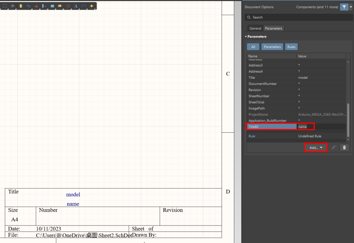 原理圖模版文件 SchDot 添加一個的字符串參數。