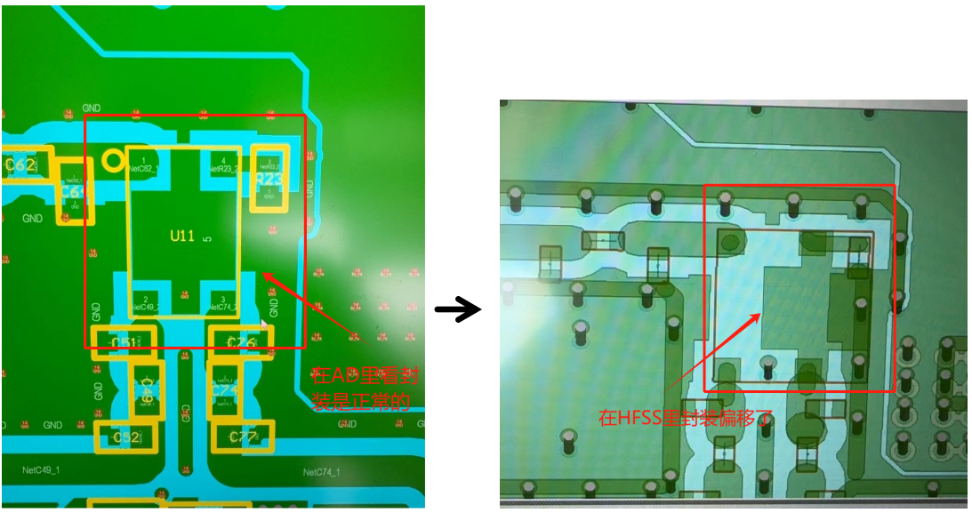 1、AD導出EDB格式文件導入HFSS的時候出現局部2個器件的封裝變形了,如圖1;