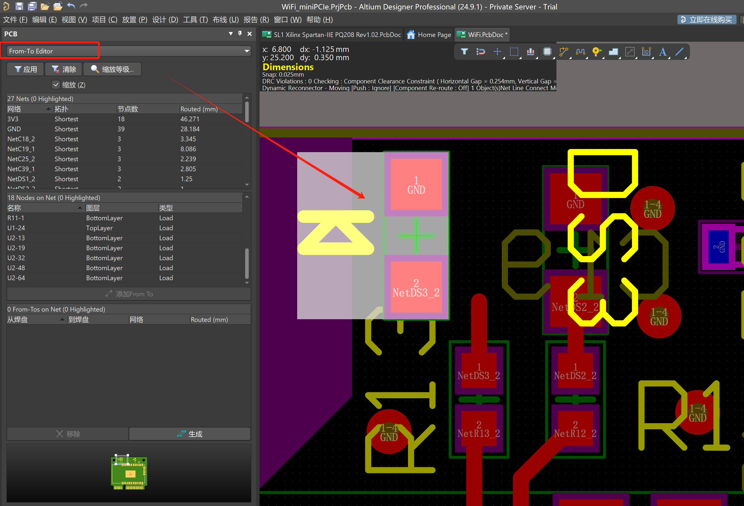 如果已經(jīng)嘗試了上述所有內(nèi)容,但連接線仍然不可見,則還需要打開PCB面板并檢查此面板頂部的下拉選項是否設(shè)置為From-to editor。如果PCB面板處于此模式,則它只能顯示正在查看或編輯的 from-to 連接線。