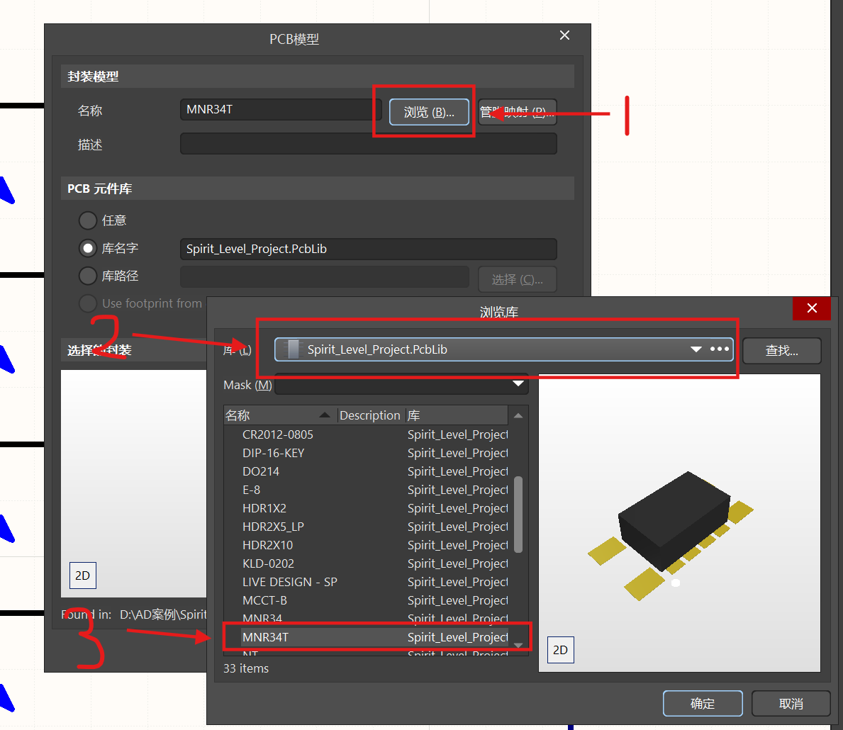 2、若封裝錯誤,點擊彈出對話框的瀏覽去修改正確的封裝,如圖3。