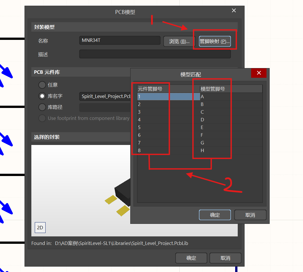 3、若封裝正確,查看封裝管腳與原理圖管腳編號是否對應,如圖4,若不對應修改為對應的管腳編號,如圖5。