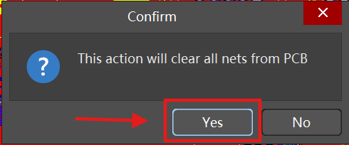 (1)在菜單欄選擇“設計--網絡表--清除全部網絡”,操作如圖7;在彈出的“confirm”面板選擇“Yes”,操作如圖8。