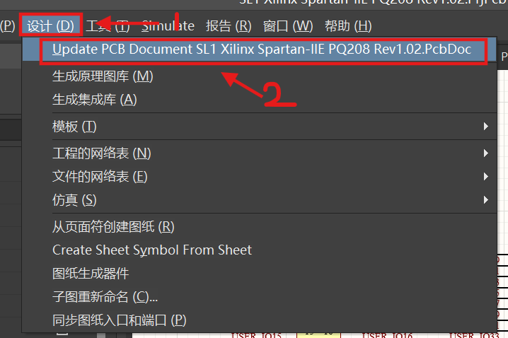 (2)清除網絡之后,再返回原理圖點擊“Updata PCB Document ......”的命令,將原理圖重新導入PCB,操作如圖10。