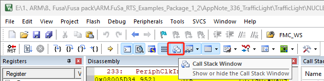 2)、Call Stack + Locals窗口可以通過菜單欄View->Call Stack WIndows打開(如圖4-2-1)或者直接在工具欄中點(diǎn)擊Call Stack Windows的按鈕打開(如圖4-2-2)。