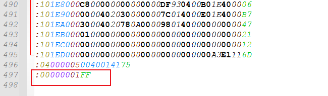 (4)、Hex文件的最后一行數(shù)據(jù):“:00000001FF”