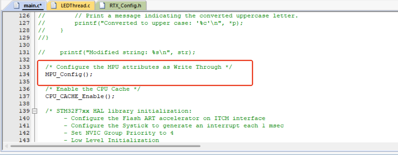 在Keil MDK中,用RTOS2后,在Main函數中開啟MPU初始化后,RTX5的線程無法正常啟動,如圖2-1所示: