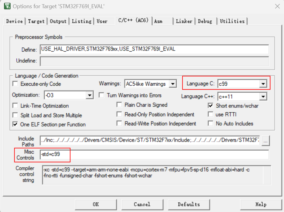 3)、方法2:在“Misc Controls”中,去掉“-C99”,如圖4-3所示: