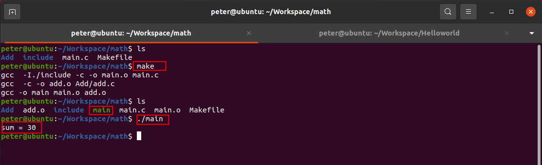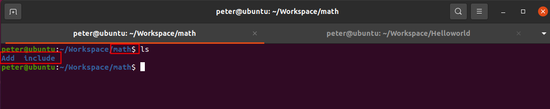 1)、在Linux系統的工作目錄下創建一個目錄:math, 再在該目錄創建兩個子目錄:add和include. 如圖4-1所示: