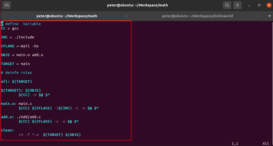 5)、在math目錄下創建Makefile文件,文件的內容如圖4-4所示: