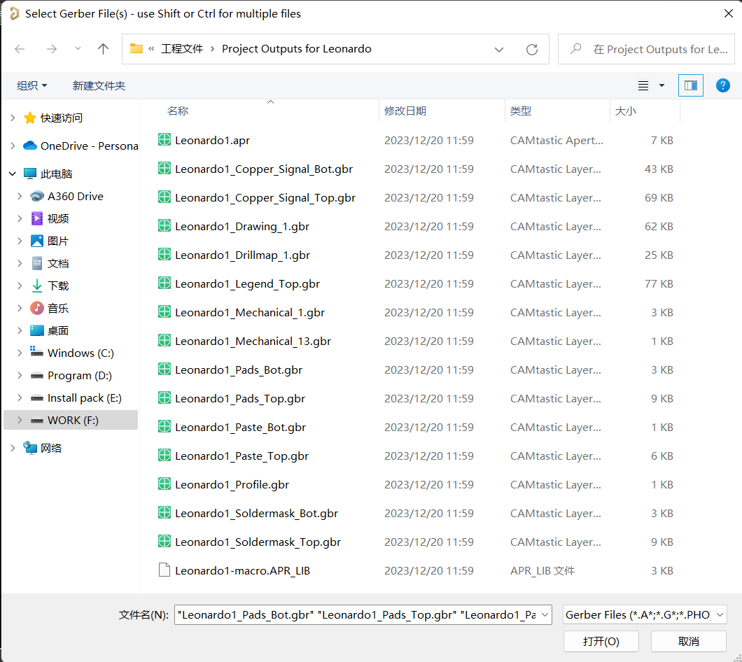 導入 Gerber文件:【文件】→【導入】→【Gerber】將 Gerber 文件導入步驟一新建的 cam 文件中。