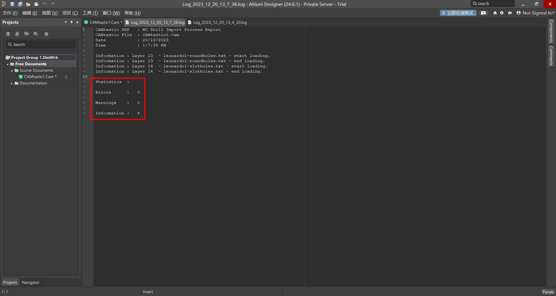 可以看到日志提示,無警告無報錯,返回CAM 文檔。