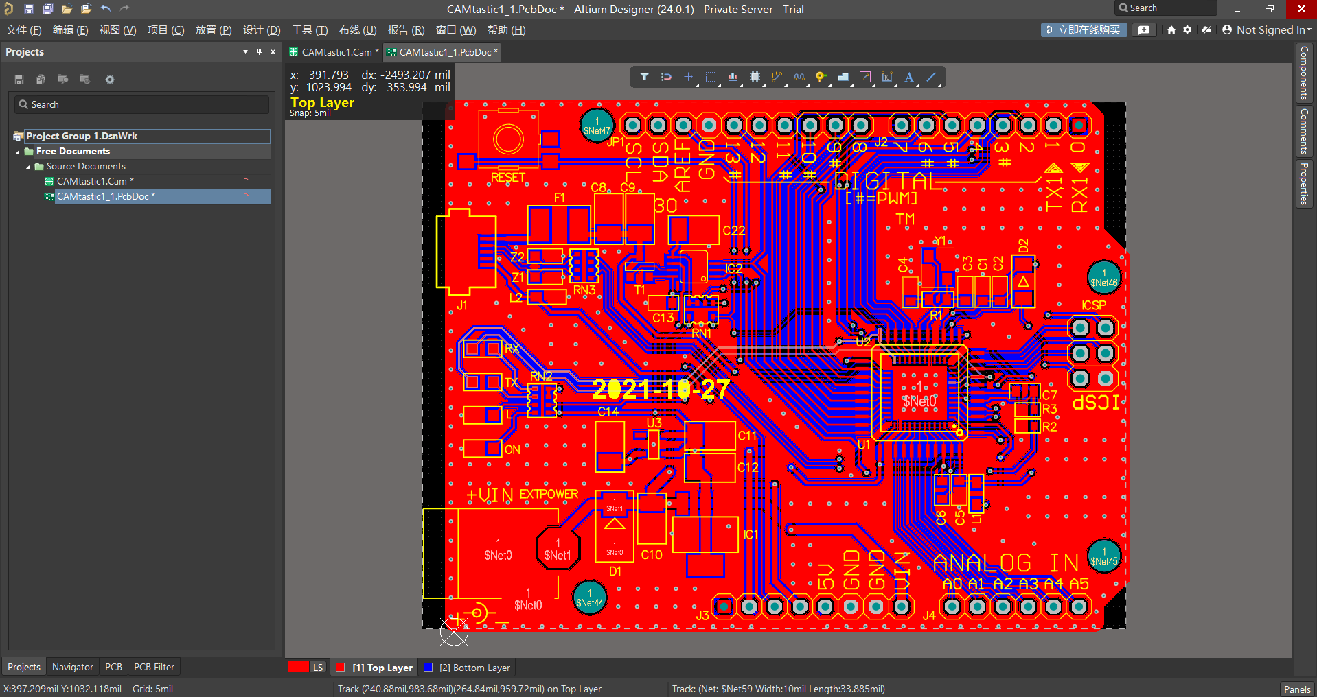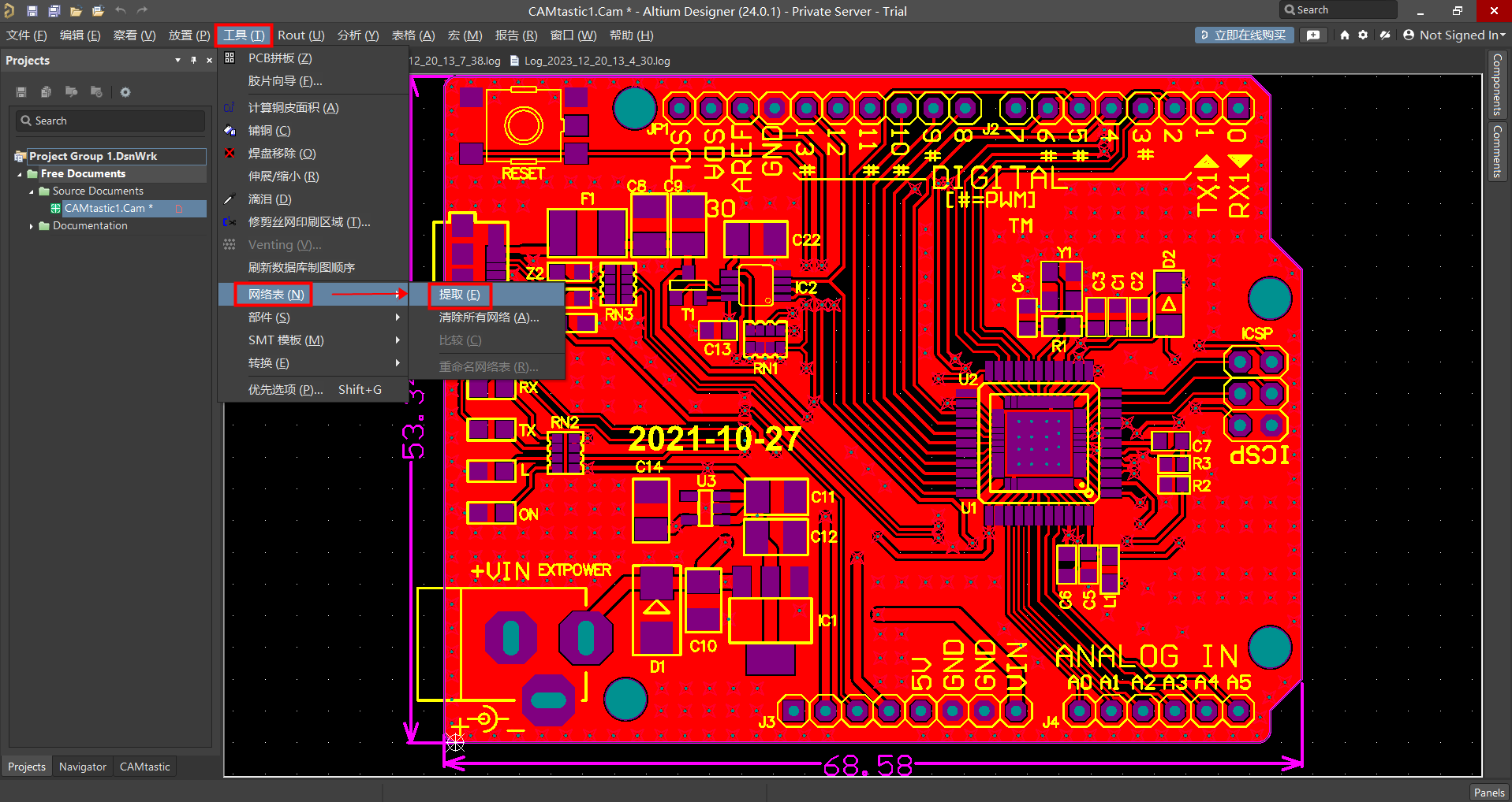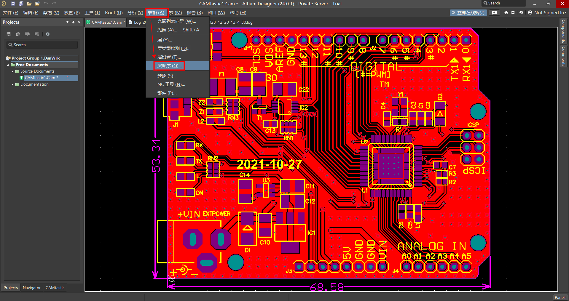 Altium Designer 自帶了一個類似 CAM350 的工具,叫 Camtastic。從 Gerber 到 PCB 的逆向工程,就由 Camtastic 工具來完成。