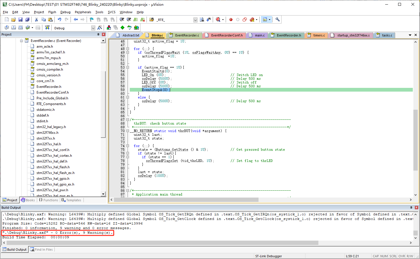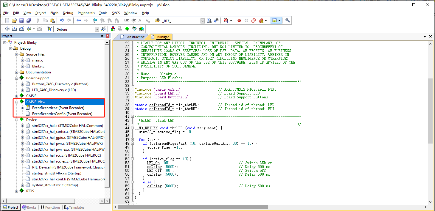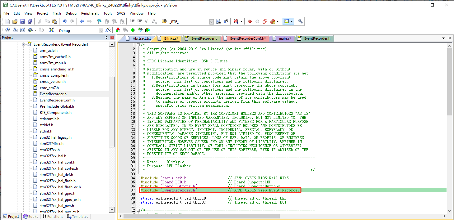 在 Blinky.c中包含 EventRecorder.h 頭文件