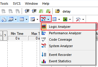 1. Logic Analyzer窗口可以通過(guò)菜單中View->Analysis Windows->Logic Analyzer去打開(kāi)(如圖2-2),或者可以通過(guò)工具欄中System Analysis WIndows的圖標(biāo)去打開(kāi)Logic Analyzer窗口(如圖2-3)。