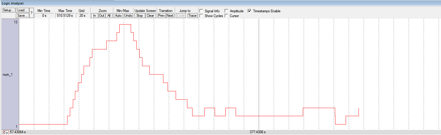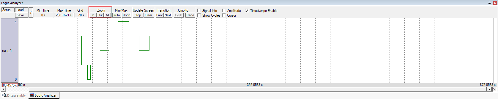 a) Current Logic Analyzer Signals:顯示當(dāng)前被添加到 Logic Analyzer 中的變量或者信號(hào)