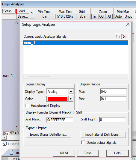 f) Kill All:清除Logic Analyzer中的全部信號(hào)。