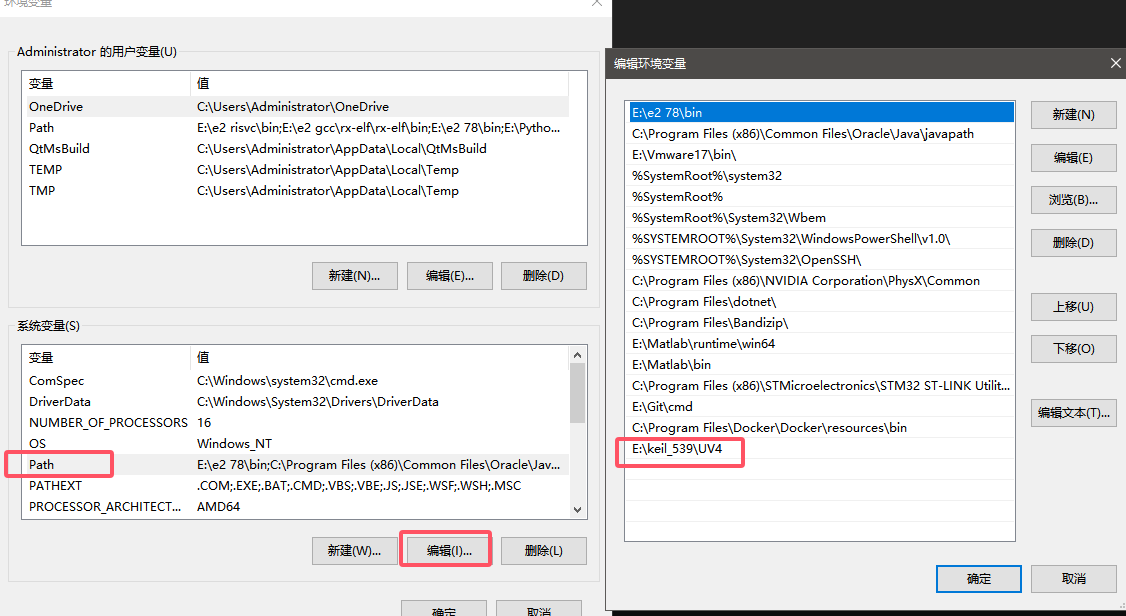 (1)、Keil MDK 的命令行工具通過 UV4.exe 提供,支持多種命令和選項(xiàng),但是要想在CMD終端窗口中運(yùn)行Keil的命令行語句,首先需要我們?yōu)閁V4.exe這個可執(zhí)行程序提前設(shè)置好環(huán)境變量,否則我們將無法在任意目錄下使用Keil的命令行語句(不添加環(huán)境變量,就只可以在keil安裝目錄中的UV4文件夾下使用這些命令行語句),設(shè)置并添加環(huán)境變量的方法如圖2所示: