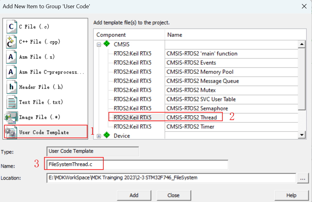 9. 添加一個線程程序:FileSystemThread.c,如圖3-9所示: