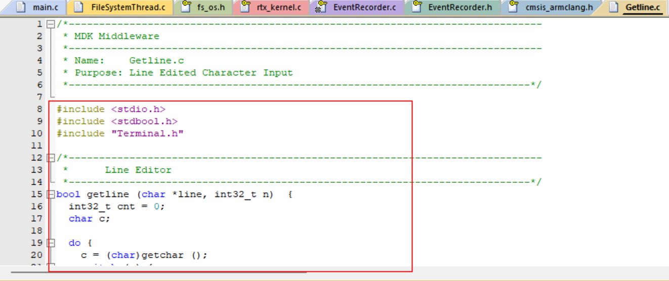 13. 添加一個鍵盤輸入的代碼文件“Getline.c”,如圖3-13所示: